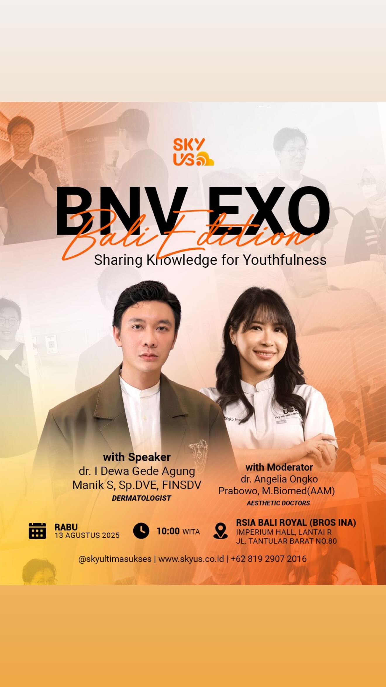 The BNV EXO Workshop, hosted by SKY US, will take place on August 13th in the beautiful paradise of Bali ๐๏ธ.
